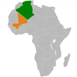 ![]() Localización de Malí (naranja) y Argelia (verde).
