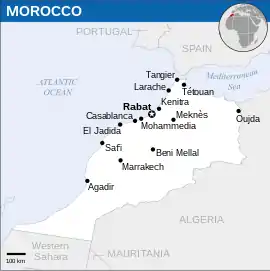 ![]() Localización de Marruecos (naranja) y Argelia (verde).
