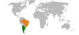 ![]() Localización de Brasil (naranja) y Argentina (verde).