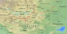 Trazado de la frontera austriaco-eslovena (en rojo). | ||||