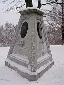 A poca distancia del trifinio, se conmemora la intersección de las fronteras con un monumento. Con forma de forma tetraedro truncado, a cada lado lleva el escudo de armas de los tres países. La parte austriaca también lleva la enmienda «10•IX•1919», por el 10 de septiembre de 1919, fecha de firma del tratado de Saint-Germain-en-Laye. La cara húngara porta «4•VI•1920», por el 4 de junio de 1920, firma del tratado de Trianón. La cara eslovena muestra las dos fechas.