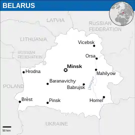 ![]() Localización de Bielorrusia (verde) y Ucrania (naranja).