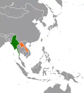 ![]() Localización de Laos (naranja) y Birmania (verde).