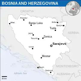 ![]() Localización de Croacia (naranja) y Bosnia-Herzegovina (verde).