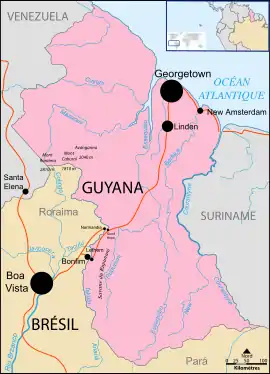![]() Localización de Guyana (naranja) y Brasil (verde).