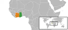 ![]() Localización de Costa de Marfil (naranja) y Ghana (verde).