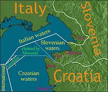 Disputas territoriales al nordeste del mar Adriático.