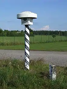 La restauración de la frontera entre Letonia y Estonia se inició en 1992 y se completó en 1999. Está marcado con 442 hitos.
