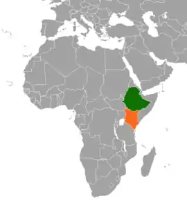 ![]() Localización de Kenia (naranja) y Etiopía (verde).