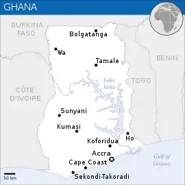 ![]() Localización de Togo (naranja) y Ghana (verde).
