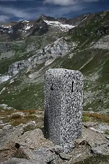 - La sección principal es una frontera internacional estándar y corre en dirección oeste/este por 698 km. Empieza hasta la cresta occidental de mont Dolent (3 820 m de altitud), al trifinio formado con las fronteras franco-italiana y franco-suiza. Finaliza en un segundo trifinio formato por las fronteras austro-italiana y austro-suiza.