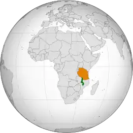 ![]() Localización de Tanzania (naranja) y Malaui (verde).