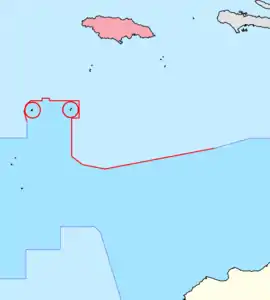 - Desde el punto de coordenadas 15°02′00″N 73°27′30″O, donde termina el límite con Haití, hasta el punto 15°00′40″N 71°40′30″O. Ambos puntos enmarcan el Área de Pesca Común.