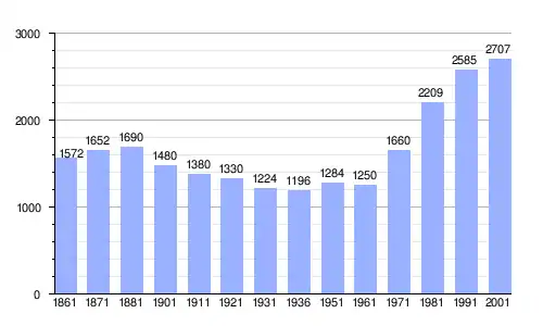 Gráfica de evolución demográfica de Frossasco entre 1861 y 2001 |