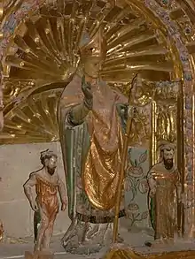 ![]() Esculturas de san Fructuoso, san Eulogio y san Augurio en Colmenares, Palencia | ||