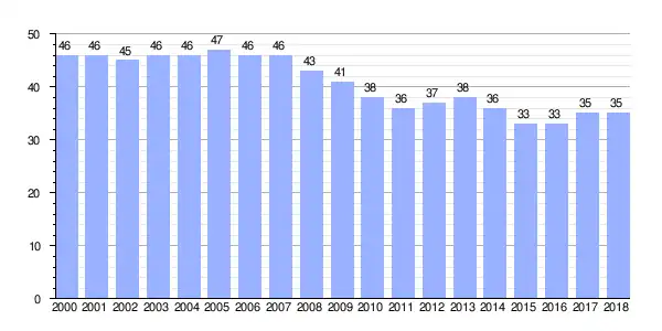 Gráfica de evolución demográfica de Fruzo entre 2000 y 2018 |