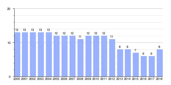 Gráfica de evolución demográfica de Fucarelos entre 2000 y 2018 |