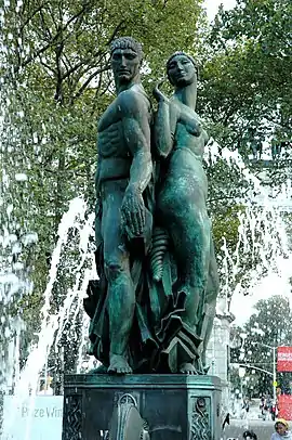 La Fuente Golden Spray de 1867[3] con un solo chorro de agua fue parte del diseño de Grand Army Plaza de 1867.