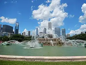 L fuente fue diseñada por Edward H. Bennett, uno de los coautores del Plan de Chicago. Inspirada en la fuente de Latona del Palacio de Versalles, esta fuente de estilo rococó (similar a un pastel de bodas) una de las fuentes más grandes del mundo. De abril a octubre, en el lugar hay shows de agua y shows nocturnos de iluminación. En el invierno, la fuente está inactiva, pero está decorada con luces de festival.[2][3][4]