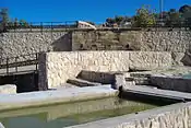 En los surtidores, se encuentran colocadas dos máscaras en relieve, con representación antropomorfa, en cuyas bocas se han colocado sendos caños para la salida del agua. Se han identificado dichas máscaras como esculturas prerromanas, más concretamente las conocidas como cabezas cortadas celtas, presentando grandes ojos almendrados y nariz y orejas de trazos muy simples. Tan sólo en una de las máscaras es posible reconocerlo, pues la otra se encuentra muy deteriorada.[2]