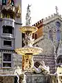 Con el permiso del papa Pablo III, la iglesia medieval de San Lorenzo Mártir fue demolida para ser sustituida en un lugar ligeramente distinto, la iglesia renacentista de San Lorenzo Mártir, un proyecto confiado al propio Montorsoli. La fuente daba a la fachada del nuevo lugar de culto, que se derrumbó con el terremoto en el sur de Calabria en 1783.