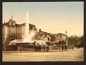 Algunos años más tarde, en 1888, aprovechándose de una remodelación urbanística de la zona que obligó al Ayuntamiento a trasladar la fuente algunos metros, se dio la ocasión para reconstruirla ex novo, cambiando completamente su aspecto. El proyecto del arquitecto Alessandro Guerrieri contemplaba tres copas circulares concéntricas a distinta altura colocadas sobre una base octogonal con lados rectos y cóncavos alternativamente; en los lados rectos se abrían cuatro estanques semicirculares y todo el conjunto estaba inmerso en una amplia piscina poco profunda.[1] El primer intento de decorar el conjunto (con ocasión de la visita a Roma del emperador Guillermo II de Alemania) con cuatro leones de yeso en los cuatro estanques semicirculares de los lados rectos del octógono no tuvo éxito, y el proyecto fue abandonado.