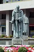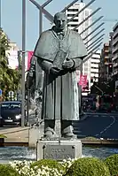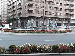 La fuente cuenta con un total de 8 estatuas de bronce a su alrededor, que representan a Quintiliano, Gonzalo de Berceo, Pedro del Castillo, Juan Fernández de Navarrete, Fausto Elhúyar, Zenón de Somodevilla y Bengoechea conocido como Marqués de la Ensenada, Julio Rey Pastor y el rey García Sánchez III de Navarra. Asimismo, esta fuente es ampliamente conocida como La fuente de las "espaldas mojadas", ya que las diferentes figuras reciben parte del agua de la fuente del centro. El nombre se debe a una llamada de un tal Nacho, cuando su inauguración, al Buzón del Lector del Diario de La Rioja que tras criticar las estatuas así la nombró y desde entonces este término se hizo popular entre los logroñeses.
