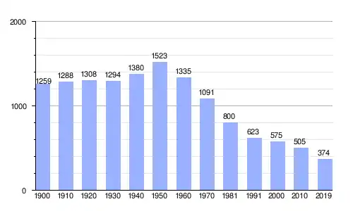 Gráfica de evolución demográfica de Fuentes de Ropel entre 1900 y 2019 |