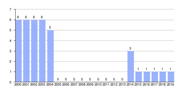 Gráfica de evolución demográfica de Fuentesanta entre 2000 y 2019 |