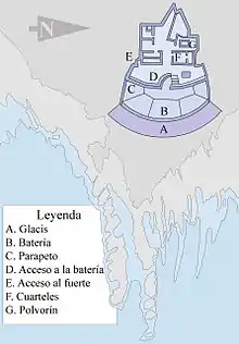 Esta fortificación formaba parte del sistema de baterías situadas en la Bahía de Algeciras creadas a partir de la pérdida de Gibraltar en 1704 con la intención de proteger la ciudad de posibles invasiones británicas y las embarcaciones que se resguardaban en el puerto. Se hallaba situado en Punta del Fraile, al sur de la Bahía de Algeciras en el Estrecho de Gibraltar.[1] Este fuerte establecía contacto visual con el Fuerte de Punta Carnero situado al norte de su posición pero no tenía contacto visual con el fuerte situado al sur el de El Tolmo encontrándose desprotegido por esta posición ante eventuales ataques. Para evitar este contratiempo este fuerte se completaba con la presencia de una torre vigía, la Torre del Fraile unos metros ladera arriba. Poseía una batería circular con una dotación artillera de dos cañones de 24 libras y tres de dieciocho.[2] Su defensa por tierra se veía favorecida por lo abrupto del terreno aunque también su construcción misma, por ello esta construcción a diferencia de otras de la zona no se encontraba abaluartada.