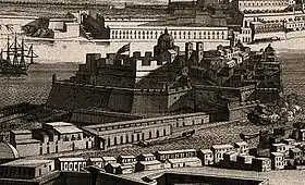 La fortificación original fue iniciada en 1551, inicialmente bajo el patronazgo del Gran Maestre Juan de Homedes y Coscon, según un diseño del ingeniero militar Pedro Pardo d’Andrera, y ampliada a una ciudad fortificada por el Gran Maestre Claude de la Sengle durante los preparativos de los Caballeros para el Gran Sitio de Malta.