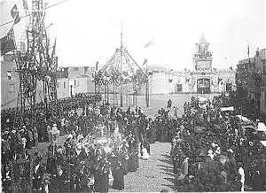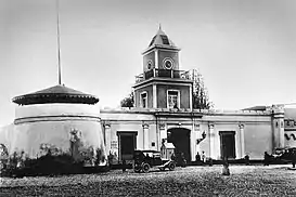 ![]() Frontis del Fuerte de Santa Catalina, antiguo Cuartel de Artillería y de la Policía Militar. Por el automóvil que se ve estacionado se trata de una foto tomada en los años 20 del siglo XX. | ||