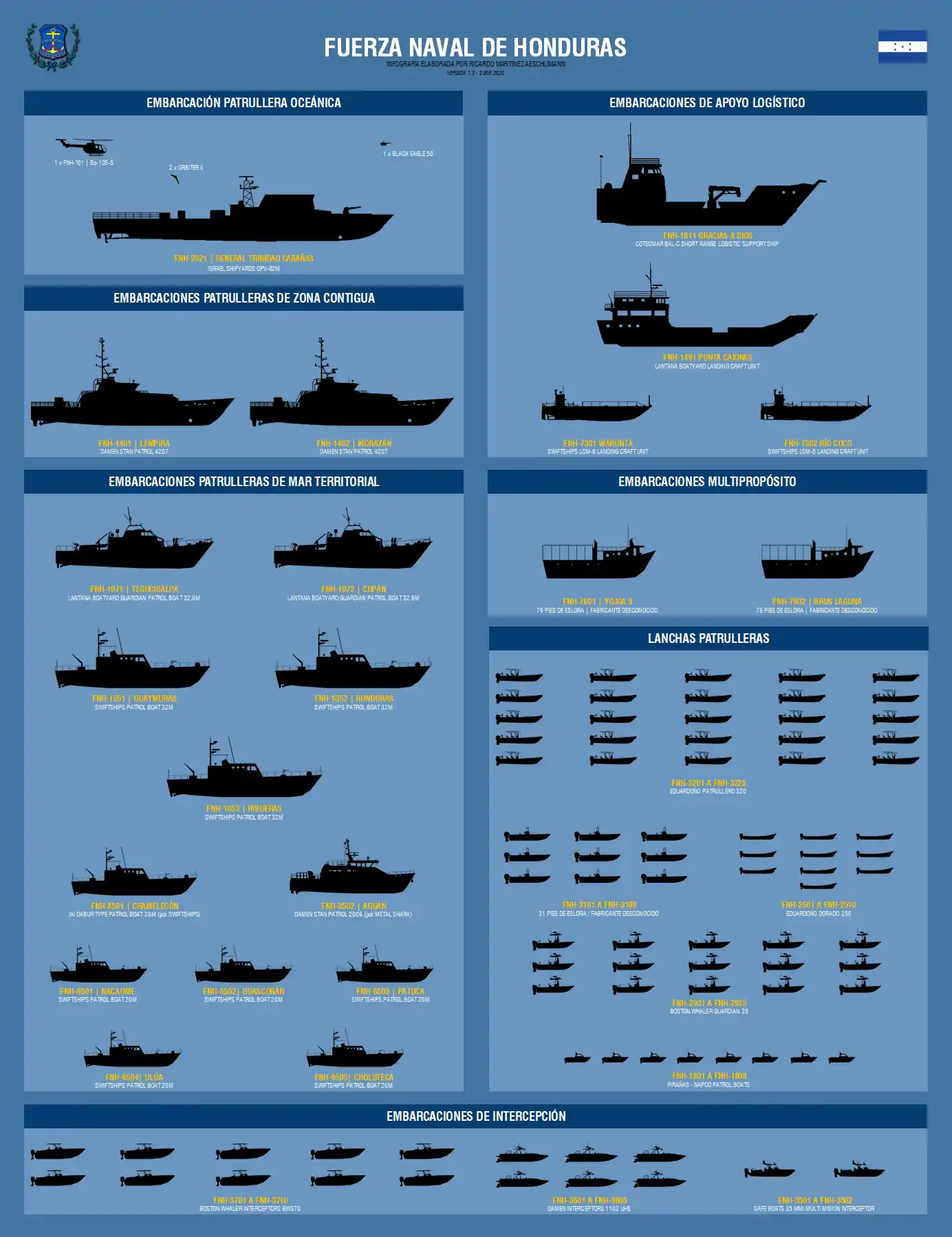 La flota naval hondureña,se compone de las siguientes naves:
