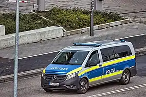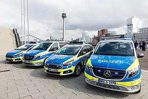 La policía alemana suelen utilizar automóviles de fabricantes alemanes. Mercedes-Benz, Volkswagen, Audi, Opel y BMW son comúnmente utilizados como coches patrulla (Streifenwagen). Los Estados prefieren utilizar para los vehículos fabricados en o cerca de los respectivos Estados. Sin embargo, con la mayoría de los estados de arrendamiento financiero en lugar de comprar sus vehículos, ya la luz de las normas comunitarias sobre la licitación del contrato, los Estados tienen menos latitud en la elección de qué fabricante proporcionará a sus coches patrulla que lo hicieron.