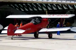 La Jodel Compostela de la FIO fue fabricada bajo licencia en España. No es propiedad de la Fundación pero participa en las demostraciones. |