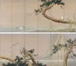 ![]() Costa al anochecer, par de biombos de Furuya Kōrin (1910) | ||