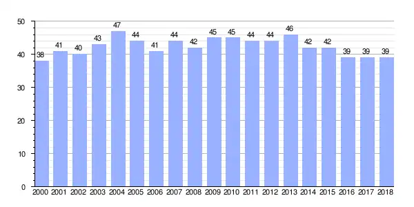Gráfica de evolución demográfica de Gándara entre 2000 y 2018 |