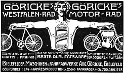Göricke comenzó a fabricar bicicletas en 1895. En 1899 pasó a llamarse Bielefeld Maschinen- und Fahrradwerke AG, August Göricke. A partir de 1903 también se produjeron motocicletas. En 1921 se le cambió de nuevo el nombre a la compañía, que pasó a denominarse Görickewerke A.G.