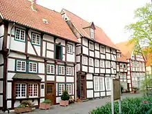 Se pueden ver numerosos ejemplos de casas típicas denominadas Fachwerkhaus construidas en barro (habitualmente pintados de cal blanca) con soportes de madera exterior (pintados de negro).