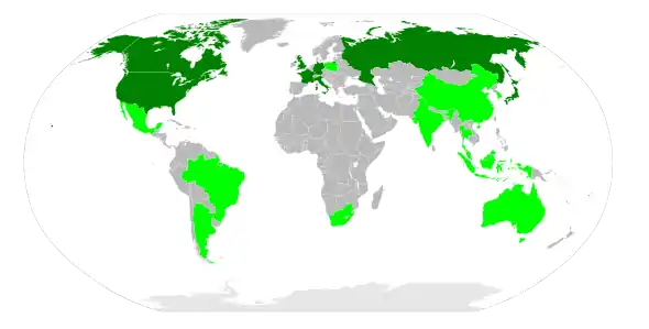 El grupo inicialmente se integró con los países del G8 más otros 14 países.
