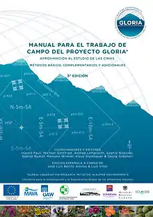 Manual para el trabajo de campo del proyecto GLORIA. Aproximación al estudio de las cimas. Métodos básico, complementarios y adicionales. 5ª edición. Pauli, H.; Gottfried, M.; Lamprecht, A.; Niessner, S.; Rumpf, S.; Winkler, M.; Steinbauer, K. & Grabherr, G., coordinadores y editores (2015). Edita GLORIA-Coordinación, Academia Austriaca de Ciencias y Universidad de Recursos Naturales y Ciencias de la Vida, Viena, Austria. Edición en español a cargo de J.L. Benito Alonso & L. Villar, Jaca, España. ISBN 978-92-79-47948-9 (versión electrónica en español) ISBN 978-84-947985-7-3 (versión papel en español). doi 10.2777/37575.