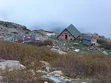 - Etapa 2. Refugio d’Ortu di u Piobbu-Refugio de Carrozzu, 9 km.[6] El camino empieza ascendiendo hasta Bocca di Pisciaghja, a 1950 m y sigue por una serie de collados a gran altura. Pasa al oeste de Capu Ladroncellu (2145 m) y tras el col d'Avartoli (1898 m) y la Boca Innominata (1912 m), desciende largamente hasta el refugio de Carrozzu, a 1270 m.[7]