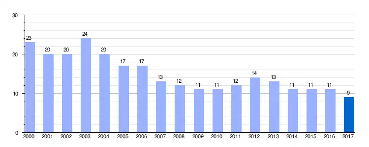 Gráfica de evolución demográfica de Gabanes entre 2000 y 2017 |