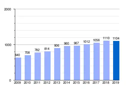Gráfica de evolución demográfica de Gabia Chica entre 2009 y 2019 |