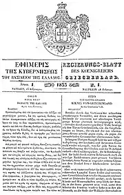 - Esta obra contiene una traducción derivada de «Government Gazette (Greece)» de Wikipedia en inglés, publicada por sus editores bajo la Licencia de documentación libre de GNU y la Licencia Creative Commons Atribución-CompartirIgual 3.0 Unported.