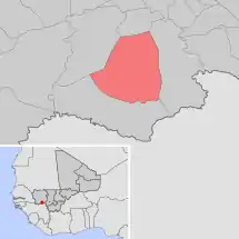 Se encuentra ubicada al oeste del país y al sureste de la región de Kayes, cerca de la frontera con República de Guinea y la región de Kulikoró.