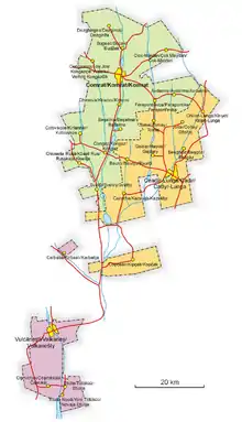 Gagauzia se compone de una municipalidad (Comrat), dos ciudades (Ceadîr-Lunga y Vulcăneşti) y veintitrés pueblos con un total de treinta y dos localidades.[29]