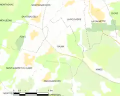 Gajan es una población y comuna francesa, situada en la región de Languedoc-Rosellón, departamento de Gard, en el distrito de Nimes y cantón de Saint-Mamert-du-Gard.