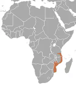 Habita en Malaui, Mozambique, Tanzania y Zimbabue. Su hábitat es el bosque seco tropical y subtropical.[1]