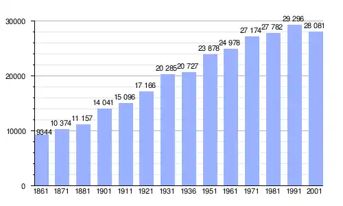 Gráfica de evolución demográfica de Galatina entre 1861 y 2001 |